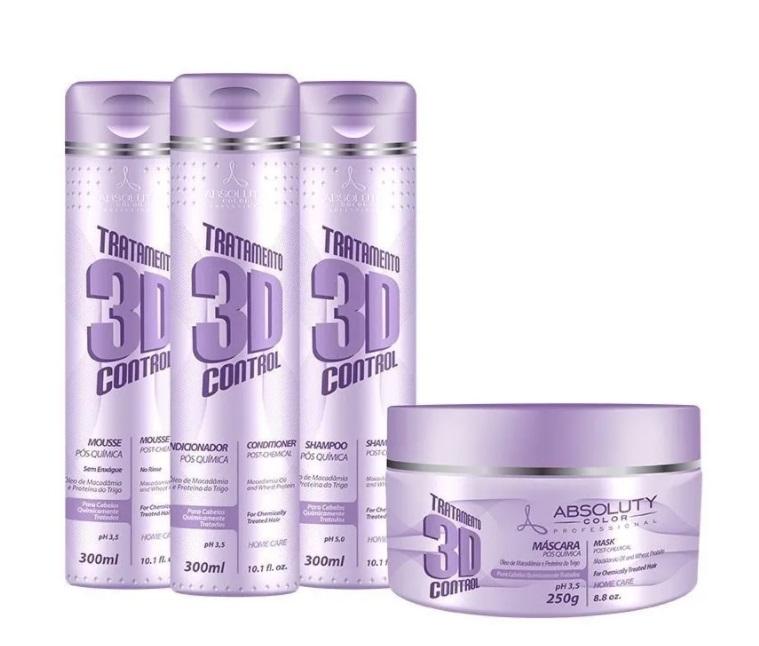 Absoluty Color Home Care Post Chemical 3D Control Macadamia Wheat Protein Kit 4 Itens - Absoluty Color